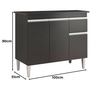 Balcão de Cozinha Tatiane com Tampo 100cm Preto Fosco - AJL