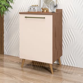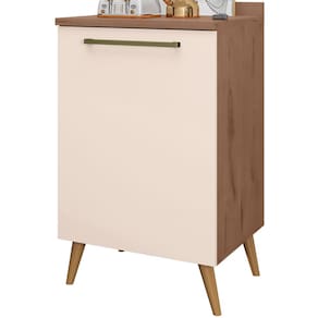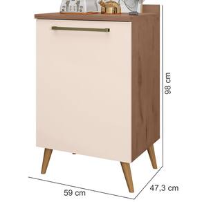 Estrutura: MDP com espessura de 15 mmAcabamento: Pintura U.V texturizado resistente de fino acabamentoPorta: Sim, 01 porta de abrir com dobradiças metálicas de 35 mmPrateleira: Sim, prateleiras que suporta o peso de ate 6 kgPuxadores: Sim, em PVCPés: Sim, 04 pés de em PVC, estilo palito retrô, maior durabilidade e segurançaDiferencial: Design elegante e sofisticadoDimensões do produto Montado