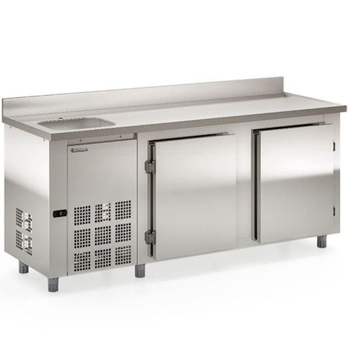 Balcão de Encosto 2 Portas e 1 Pia 556 Litros GBFE200CEAI Gelopar. Conservador e Expositor de frios, laticínios, bebidas e alimentos diversos não congelados. Ideal para cozinhas industriais de hotéis, restaurantes, clubes, bares, lanchonetes, confeitarias, mercados, mercearias e outros. Temperatura: 0 a +7C. Refrigeração: Ar forçado com evaporador aletado. Controlador eletrônico com indicador de temperatura. Degelo automático (frost free). Portas: Cegas. Prateleiras: 1 nível aramadas e regulável. Resistência no quadro de portas. Revestimento interno em aço galvanizado. Revestimento externo do tampo em aço inox 304 escovado, gabinete em aço inox 430 e traseira e fundo em aço galvanizado. Tampo com cuba de 40x34x13cm. Tampo liso, sem rebaixo. Pés niveladores. Motor do lado esquerdo, para quem está de frente para as portas. Compatível com cuba GN e caixa euronorm. ATENÇÃO: não acompanha cubas, torneira e sifão. CAPACIDADE: 556L. TEMPERATURA: 0 a +7C. CONSUMO: 5,6 kWh/dia. PESO: 76kg. DIMENSÕES EXTERNAS (PxAxF): 70x100/90x200cm. Equipamento certificado conforme Portaria Inmetro nº 371/2009. Balcão de Encosto 2 Portas e 1 Pia 556 Litros GBFE200CEAI Gelopar é na Atau.