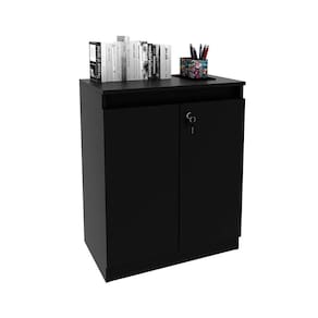 Balcão de Escritório ME4149 c/ 2 Portas c/ Chave Preto - Tecno Mobili