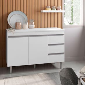 Características Gerais do Produto: - Altura: 81 cm - Gavetas: 3 Gavetas - Ideal para: Cozinha - Informações Adicionais: Prateleira Interna, Puxadores Embutidos - Largura: 116 cm - Material: MDP - Pintura: Pés em PVC - Portas: 2 Portas - Profundidade: 50 cm - Tipo de Porta: Porta de Bater - Acabamento: Pintura UV - Informações Adicionais: - Não nos responsabilizamos pela montagem dos produtos. Todos os produtos acompanham acessórios para que sejam montados. - Não nos responsabilizamos, no ato da entrega, por subir escadas/elevadores ou transporte por guincho em apartamentos. - Eventuais despesas são de responsabilidade do comprador; - Confira as dimensões deste produto e certifique-se de que passará normalmente por supostos elevadores, portas, escadas e/ou corredores de sua residência; - Não aceitamos devolução de produtos com caixas violadas ou materiais danificados, confira a quantidade de volumes e se o que está sendo entregue corresponde com a mercadoria adquirida, não aceitamos devolução após o prazo de arrependimento de 7 dias corridos.