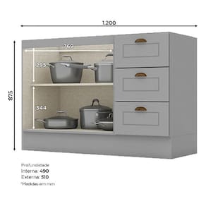 Balcão de Pia 120 cm Nova York Cinza Henn