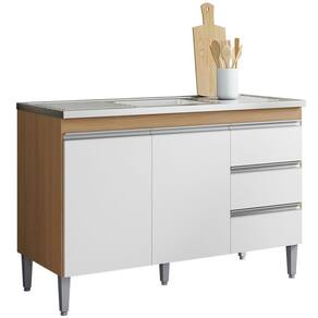• 1 x Balcão de Pia 120 cm Sem Tampo 2 Portas e 3 Gavetas Adriana