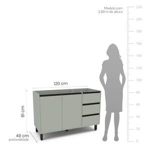 Características: Estrutura MDP Pintura UV 02 Portas com dobradiças metálicas 03 Gavetas com corrediças telescópicas Puxadores de Plástico Possui prateleira com amplo espaço 05 pés em plástico Peso suportado nas Prateleiras Estruturais: 10kg Peso suportado nas Prateleiras: 5kg Peso suportado nas Gavetas: 3kg *Não acompanha Tampo*