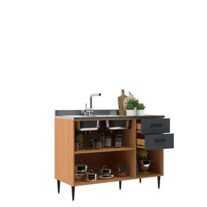 O Balcão de Pia 120 cm é ideal para acondicionar e organizar objetos, indicado para compor ambientes em sua cozinha. Possui puxadores Alumínio na cor Preto com as ponteiras cromadas. Produto em MDP com acabamento em Pintura UV. Possui 2 portas largas basculantes com pistão a gás e 1 porta inferior direita basculante e 2 gavetas com trilho telescópico para um deslizamento alinhado e suave. Suporta Granito: Sim Acabamento da Prateleira: Pintura UV Escala de Brilho da Prateleira: Fosco Acabamento da Gaveta: Pintura UV Escala de Brilho da Gaveta: Fosco Material do Puxador da Gaveta: Metal Acabamento da Porta: Pintura UV Escala de Brilho da Porta: Fosco Material do Puxador da Porta: Metal Acabamento: Pintura UV Acabamento dos Pés: Polipropileno Acompanha Tampo: Não Altura dos Pés: 17 cm Ambiente Principal: Cozinha Balcão Acompanha Pia: Não Cesto para Frutas: Não Complexidade da Montagem: Média: pode ser montado por mais de uma pessoa e/ou necessite de maior conhecimento para montagem Cor: Angelin/Grafite Cor do Produto: Angelin/Grafite Cor Flex: Nao Cor Interna: Angelin Escala de Brilho: Fosco Espessura do Material da Estrutura: 15 mm Gaveta com Chave: Não Itens Inclusos: 1 Balcão, Kit Ferragens e Manual de Montagem Linha ou Coleção: Flora Manual de Montagem e Instalação: https://product-hub-prd.madeiramadeira.com.br/902835/documents/a57dde56-9a15-4343-b7d4-ac2965f2db0535manual5315angelingrafite.pdf Material da Dobradiça/Corrediça da Porta: Aço Material da Gaveta: MDP Material da Porta: MDP Material da Prateleira: MDP Material dos Pés: Polipropileno modular: Sim Montagem Flex: Não Necessita Montagem: Sim Origem do Produto: Nacional Pés Reguláveis: Sim Peso: 33,2 kg Peso Máximo por Gaveta: 5 kg Peso Máximo por Prateleira: 5 kg Possui Pés: 05 Possui Portas: Sim Possui recorte para Cooktop: Não Recomendações de Uso, Manutenção e Limpeza: Para limpeza utilize pano macio, seco ou ligeiramente umedecido com água. Não utilize sapólios, polidores e ou produtos que contenham carga abrasiva, para evitar danos ao produto. Evitar que o móvel fique exposto a luz solar direta, ou em ambientes de umidade e calor excessivo. Não colocar carga excessiva de peso nas gavetas e prateleiras, para evitar acidentes ou danos ao produto. O móvel deverá ficar nivelado, desta forma, as gavetas e as portas terão o bom funcionamento, evite arrastá-los, isso pode danificar o móvel. Sapatas Niveladoras: Não Sistema de Montagem: Cavilhas, parafusos e cola Suporta Até (kg): 30 kg Tamanho Indicado do Tampo (L x P): 120x53 Tipo de Corrediça da Gaveta: Telescópica Tipo de Dobradiça/Corrediça da Porta: Simples Tipo de Porta: Bater Tipo de Puxador da Gaveta: Externo Tipo de Puxador da Porta: Externo