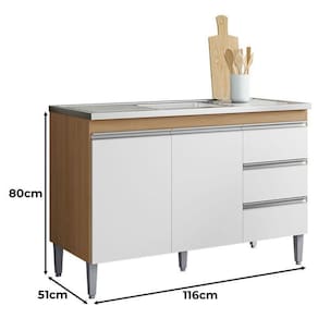 Balcão de Pia Andréia 120cm Amêndoa Branco - AJL