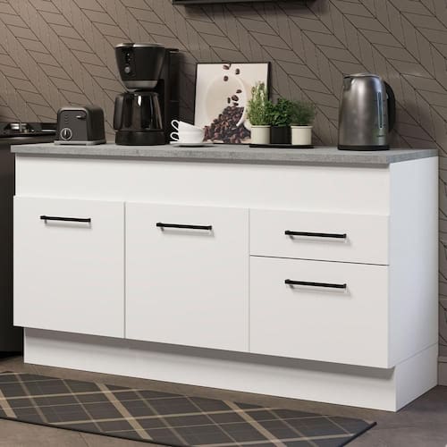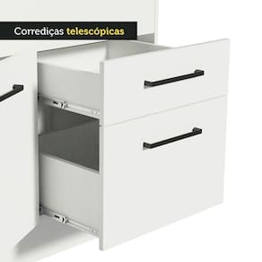 Já as duas gavetas contam com corrediças telescópicas, que permitem sua total abertura. Por seu ótimo tamanho, o balcão permite acomodar de maneira organizada: panelas, utensílios, louças, talheres e muito mais.