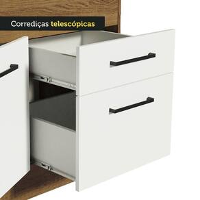 O móvel é desenvolvido com materiais de alta qualidade, como revestimento em metal na porta, puxadores em alumínio e dobradiças com amortecimento.