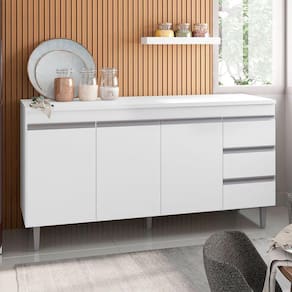Características Gerais do Produto: - Altura: 81 cm - Gavetas: 3 Gavetas - Ideal para: Cozinha - Informações Adicionais: Prateleira Interna, Puxadores Embutidos - Largura: 155 cm - Material: MDP - Pintura: Pés em PVC - Portas: 3 Portas - Profundidade: 50 cm - Tipo de Porta: Porta de Bater - Acabamento: Pintura UV - Informações Adicionais: - Não nos responsabilizamos pela montagem dos produtos. Todos os produtos acompanham acessórios para que sejam montados. - Não nos responsabilizamos, no ato da entrega, por subir escadas/elevadores ou transporte por guincho em apartamentos. - Eventuais despesas são de responsabilidade do comprador; - Confira as dimensões deste produto e certifique-se de que passará normalmente por supostos elevadores, portas, escadas e/ou corredores de sua residência; - Não aceitamos devolução de produtos com caixas violadas ou materiais danificados, confira a quantidade de volumes e se o que está sendo entregue corresponde com a mercadoria adquirida, não aceitamos devolução após o prazo de arrependimento de 7 dias corridos.