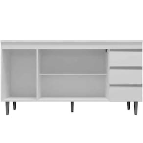 Características do Balcão para Cozinha 3 Gavetas: - Estrutura em MDP; - Pintura UV Touch com acabamento fosco; - 3 portas com dobradiças em Aço; - Puxadores embutidos; - 1 prateleira; - 3 gavetas com corrediças metálicas; - Pés em PVC; - Não acompanha tampo; - Não acompanha objetos de decoração;