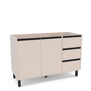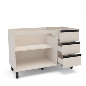 Balcao de Pia 2 Portas 3 Gavetas sem Tampo Koya Politorno Moveis O Balcao de Cozinha 2 Portas e 3 Gavetas Koya Creme, da Politorno Moveis, e a combinacao perfeita de elegancia, funcionalidade e amplo espaco de armazenamento. Suas 3 gavetas com corredicas telescopicas garantem um deslizamento suave e resistente, enquanto as 2 portas proporcionam ainda mais espaco interno. O acabamento em pintura UV confere mais durabilidade, protecao e facil limpeza. Ideal para quem busca um movel funcional e estiloso para compor a cozinha!