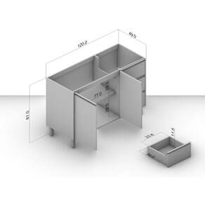 Dimensoes: Altura: 81 cm Largura: 120 cm Profundidade: 49 cm Peso: 24,15 kg
