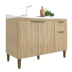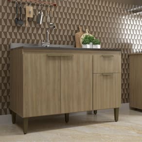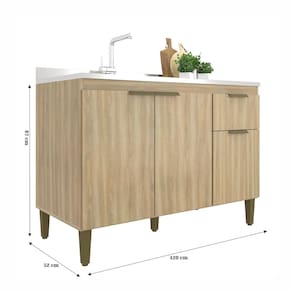 Caracteristicas: 1 Gaveta com corredicas metalicas 3 Portas com dobradicas metalicas Altura dos pes 17cm Espessura Chapa 15mm Estrutura em MDP Perfect Nao acompanha pia Pes em polipropileno Puxadores perfil Sistema de montagem parafusos philips