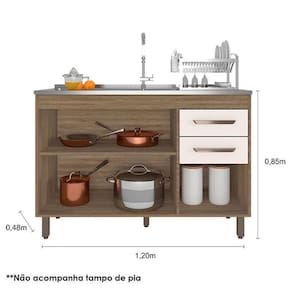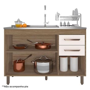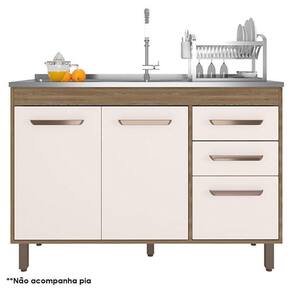 Balcão de Pia 3 Portas 2 Gavetas 120cm Cavalho OAK Off White - Poliman