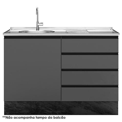 Balcão de Pia 4 Gavetas Etna Grafite – Poliman