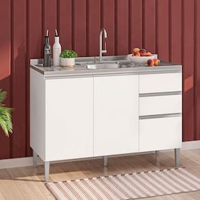 Apresentamos a você que procura por qualidade bom preço e um design moderno que irá lhe proporcionar praticidade na hora de organizar seus utensílios, o Balcão de Pia da linha Aline na cor Branco conta com amplo espaço interno para maior organização dos seus utensilios, pés reguláveis para facilitar seu dia a dia. Confira mais sobre esse lindo balcão abaixo: