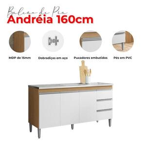 Balcão de Pia Ambiente Andréia 160cm Amêndoa Branco - AJL
