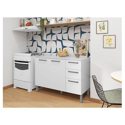 Balcão de Pia Ambiente Mad Versalhes 120 cm com Tampo Branco Supremo - Kits Paraná