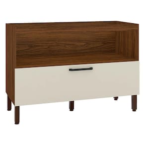 Balcão de Pia Ametista 1 Porta Basculante 1 Gaveta 120 cm Nogueira Off White Ripado - Kits Paraná