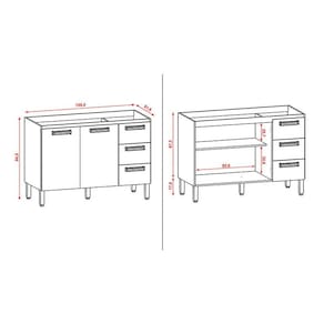Balcão de Pia Ametista 2 Portas 3 Gavetas 120 cm Freijó Supremo - Kits Paraná