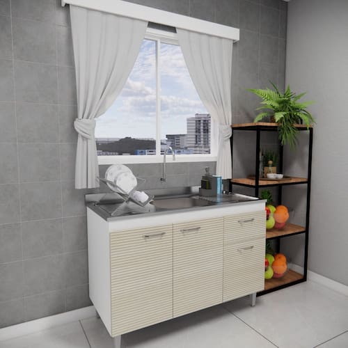 O balcão de cozinha de 120 cm é uma peça essencial para quem busca funcionalidade e estilo. Com um design compacto, ele otimiza o espaço, servindo como área de preparo e apoio para refeições. Equipado com prateleiras para armazenamento, oferece praticidade ao manter utensílios e ingredientes à mão. Versátil, combina com diferentes estilos de decoração, desde o moderno até o rústico, tornando-se um elemento decorativo que eleva o ambiente. Ideal para pequenas cozinhas, é perfeito para maximizar a eficiência sem abrir mão do charme. Suporta Granito: Sim Acabamento da Prateleira: BP Melamínico Escala de Brilho da Prateleira: Brilhante Acabamento da Gaveta: BP Melamínico Escala de Brilho da Gaveta: Brilhante Material do Puxador da Gaveta: ABS Acabamento da Porta: BP Melamínico Escala de Brilho da Porta: Brilhante Material do Puxador da Porta: ABS Acabamento: BP Acabamento dos Pés: Plástico Acompanha Tampo: Não Altura dos Pés: 15 cm Ambiente Principal: Cozinha Balcão Acompanha Pia: Não Cesto para Frutas: Não Complexidade da Montagem: Média: pode ser montado por mais de uma pessoa e/ou necessite de maior conhecimento para montagem Cor: Riga Cor do Produto: Riga Cor Interna: Branco Escala de Brilho: Brilhante Espessura do Material da Estrutura: 15 mm Gaveta com Chave: Não Itens Inclusos: Kit e Manual de Montagem Linha ou Coleção: Morgana Manual de Montagem e Instalação: https://product-hub-prd.madeiramadeira.com.br/949655/documents/52f6191f-42d7-41ec-80ba-7ee5f5d0d09c2351694588117266860271956.pdf Material da Dobradiça/Corrediça da Porta: Aço Material da Gaveta: MDP Material da Porta: MDP Material da Prateleira: MDP Material dos Pés: ABS modular: Não Necessita Montagem: Sim Origem do Produto: Nacional Pés Reguláveis: Sim Peso: 30 kg Peso Máximo por Gaveta: 5 kg Peso Máximo por Prateleira: 10 kg Possui Pés: 04 Possui Portas: Sim Possui recorte para Cooktop: Não Recomendações de Uso, Manutenção e Limpeza: Limpeza Regular: Utilize um pano macio levemente umedecido com água e sabão neutro para limpar o gabinete. Evite Produtos Abrasivos: Não utilize produtos de limpeza abrasivos, solventes ou produtos químicos agressivos, pois podem danificar o acabamento do MDP. Secagem Adequada: Após a limpeza, seque imediatamente o gabinete com um pano seco para evitar que a umidade se acumule na superfície. Sapatas Niveladoras: Não Sistema de Montagem: Parafusos e Cavilha Suporta Até (kg): 30 kg Tipo de Corrediça da Gaveta: Simples Tipo de Dobradiça/Corrediça da Porta: Simples Tipo de Porta: Bater Tipo de Puxador da Gaveta: Externo Tipo de Puxador da Porta: Externo Marca: Brovalia