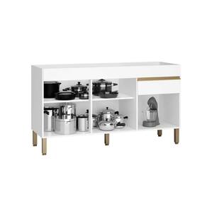 O Balcão 3 Portas e 1 Gaveta 1500 Line é produzido em MDP de 15 mm, material resistente e proveniente de fontes renováveis. Conta com três portas com dobradiças metálicas e uma gaveta com corrediça telescópica, que proporcionam abertura suave e maior durabilidade. As prateleiras internas auxiliam na organização dos utensílios e objetos, enquanto os puxadores em perfil de alumínio com pintura epóxi conferem um toque moderno ao design. Os pés reguláveis em plástico resistente garantem estabilidade e facilitam o nivelamento. O acabamento em pintura UV com textura sensível ao toque oferece beleza e resistência, tornando o produto ideal para compor cozinhas práticas e elegantes.