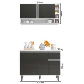 Balcão De Pia E Aéreo Cozinha 105cm Branco Cinza Sem Tampo