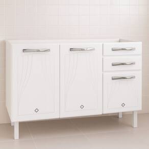Caracteristicas: 2 Gavetas que suportam ate 3kg com corredicas metalicas 3 Portas com apliques resinados 1 Prateleira interna que suporta ate 15kg Acabamento em pintura eletrostatica e anticorrosiva Estrutura em aco e polipropileno Nao acompanha tampo Possui pes regulaveis e puxadores de plastico Revestimento BF