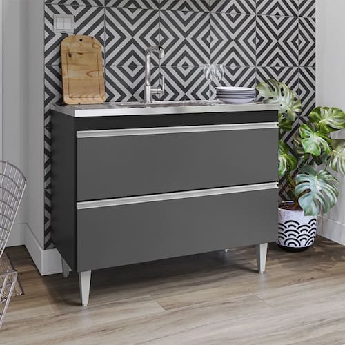 Balcão de Pia Esmeralda 100cm 2 Portas Basculantes Preto Grafite Maderatto Móveis - Grafite | Preto