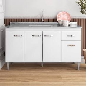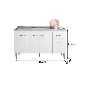 Características: Estrutura MDP Pintura UV 04 Portas com Dobradiças metálicas 01 Gaveta com Corrediças Metálicas 01 Prateleira com amplo espaço Pés de Plástico NÃO ACOMPANHA TAMPO, NEM CUBA.