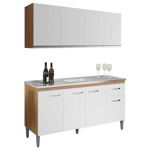 Balcão de Pia Gabriela 150cm e Armário Aéreo Andréia Amêndoa Branco - AJL