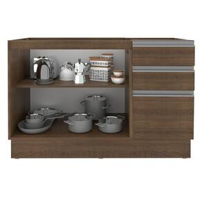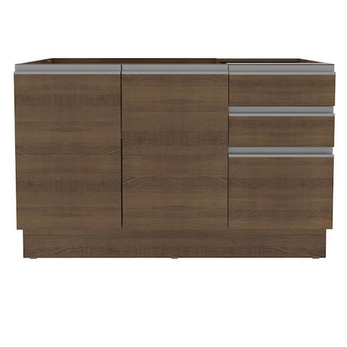 - Itens inclusos:1 balcão de 120 cm de largura com duas 2 portas e 3 gavetas (não possui tampo).
