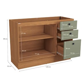 Transforme sua cozinha e a deixe mais completa com a beleza e praticidade do Balcão de Pia 120cm R668 da Cozinha Pixel da Kappesberg. Produzido em chapa MDP de 15mm, garante robustez, firmesa e qualidade, além de um acabamento lindo. Com até sete camadas de pintura, a caixaria possui acabamento touch na cor canela, com a textura dos veios da madeira, enquanto as frentes, em MDP e acabamento BP, é mais resistente contra riscos, arranhões e gotas d'água, e na cor verde frevo, possui acabamento fosco. Uma combinação aconchegante e moderna, que dará ainda mais destaque ao seu espaço, remetendo aos tons da natureza e deixando sua cozinha perfeita. Fechando ótimas combinações com o aéreo do mesmo tamanho, o balcão pode ser montado com cuba, tampo ou pedra, e para um melhor acabamento, ele conta com rodapé, mas acompanha as ferragens para ser montado suspenso, e se você preferir, também pode adquirir os pés separadamente, garantindo muita praticidade. Indispensável em todas as composições, medindo 88cm de altura, 120cm de largura e 52cm de profundidade, são duas portas, prateleiras e três gavetas, ele oferece amplo espaço para organizar louças e mantimentos com praticidade. Aqui, o destaque fica para as gavetas, duas menores e um gavetão, com corrediças telescópicas, garantindo organização para seus talheres e as dobradiças com amortecimento nas portas, garantem um fechamento suave e sem ruídos, incluindo mais durabilidade. Já o puxador, metálico na cor preta, conta com pintura epóxi, que garante maior resistência e durabilidade da cor, e seu acabamento em alto-relevo garante um diferencial único para sua cozinha. Renove seu espaço e o deixe ainda mais completo com a Cozinha Pixel da Kappesberg.