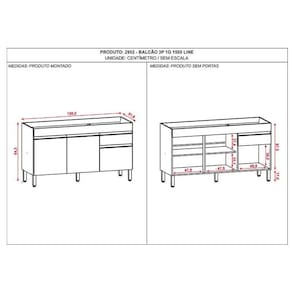 Balcão de Pia Line 150 cm Gris - Kits Paraná