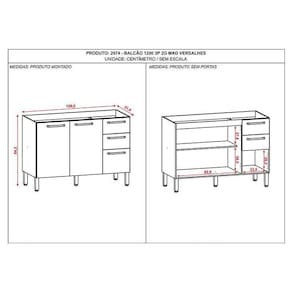Balcão de Pia Mad Versalhes 120 cm Nogueira Off White - Kits Paraná