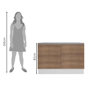 - O espaço para a colocação de tampo ou pia é de 120 cm de largura por 52 cm de profundidade.
