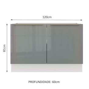Possui duas portas e a ótima profundidade proporciona muito espaço para organizar panelas, utensílios, louças e produtos de limpeza. O espaço para a colocação de tampo ou pia é de 120 cm de largura por 60 cm de profundidade.