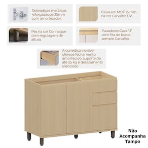 Característica do Balcão de Pia 120 cm 3 Portas 2 Gavetas Aurora: