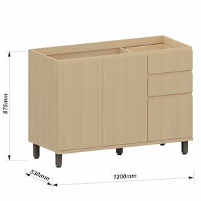 • 1 x Balcão de Pia para Cozinha 120 cm 3 Portas 2 Gavetas Aurora