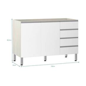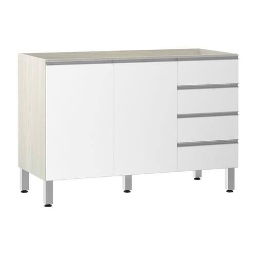 Balcão De Pia Sem Tampo Para Cozinha 120cm 2 Portas E 4 Gavetas Lis Luciane Móveis Legno Crema Com Branco Mat