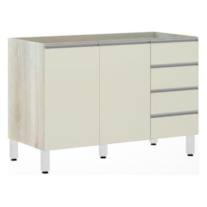 Balcão De Pia Sem Tampo Para Cozinha 120cm 2 Portas E 4 Gavetas Lis Luciane Móveis Legno Crema Com Kashmir