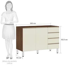 Balcão de Pia sem Tampo para Cozinha 120cm 2 Portas 4 Gavetas Jade Luciane Móveis - Lima
