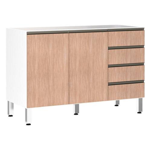 Características: Corpo/Caixaria: MDP - Branco - F.F. Frontais: MDP - Acabamento - BP. Dobradiças: Ø35mm. Puxadores: Alumínio Gola Pés: P S - Cromado. Corrediças Telescópicas: Abertura Total das Gavetas. Gavetas: 4 Porta: 2 Prateleira: 1 Montagem com Minifix, Parafusos e cavilhas. Itens incluso: manual de montagem, ferragens e acessórios para montagem.