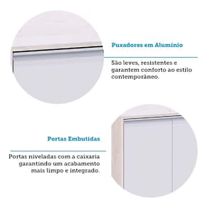O Balcão de Pia para Cozinha 120 cm Art foi desenvolvido aliando beleza e praticidade ao seu ambiente. As portas embutidas remetem ao planejado, ainda conta com acessórios requintados como dobradiças em 35mm com amortecimento Slowmotion, dobradiça com amortecedor incorporado para fechamento suave de portas, puxadores em alumínio na cor Inox e pés em PS -poliestireno- na cor champagne.