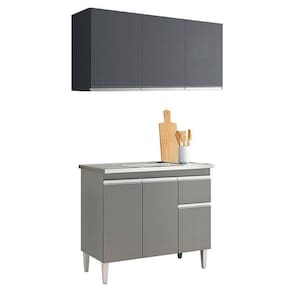 Balcão de Pia Tatiane 100cm e Armário Aéreo Andréia 3 Portas Cinza Fosco - AJL
