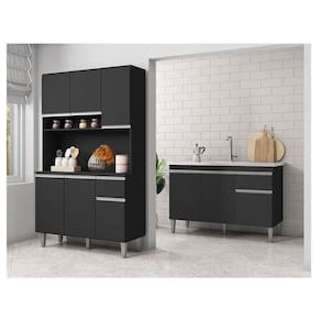 Balcão de Pia Tatiane 120 cm e Armário Cozinha Kit Márcia Ambiente Preto Fosco - AJL