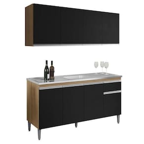 Balcão de Pia Tatiane 145 cm e Armário Aéreo Andreia 150 cm 4 Portas Amêndoa Preto AJL