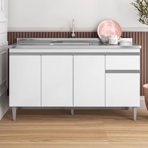 Balcão de Pia Tatiane 150cm Branco AJL Móveis