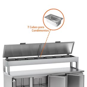 Balcão de Serviço Refrigerado Condimentador 200cm Com 7 Cubas de 1/2 Bsrc2000 220v - Refrimate