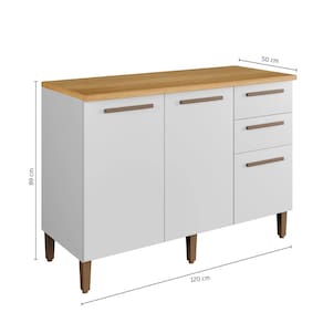 Amplo espaço interno o Balcão Diamante foi projetado para deixar sua cozinha do seu jeito. Gavetas com corrediça telescópicas, 4 portas com prateleiras internas, ele será a opção perfeita na sua cozinha.\nEspecificações do produto Montado: Altura: 89 Cm Largura: 120Cm Profundidade: 50 Cm Peso: 44Kg\nDetalhes do Produto: Garantia: 3 meses Material da estrutura: MDF Tampo de MDF 25MM Prateleira: 01 Pés reguláveis Corrediças telescópicas Tampo 25mm\nObservações: Não oferecemos serviço de montagem, mas todos os produtos possuem manual de montagem com o passo a passo. Recomendamos contratar um profissional de montagem. Pode existir alguma diferença de tonalidade entre a foto e o produto, devido ao tratamento de imagens e à calibração de cores do monitor.